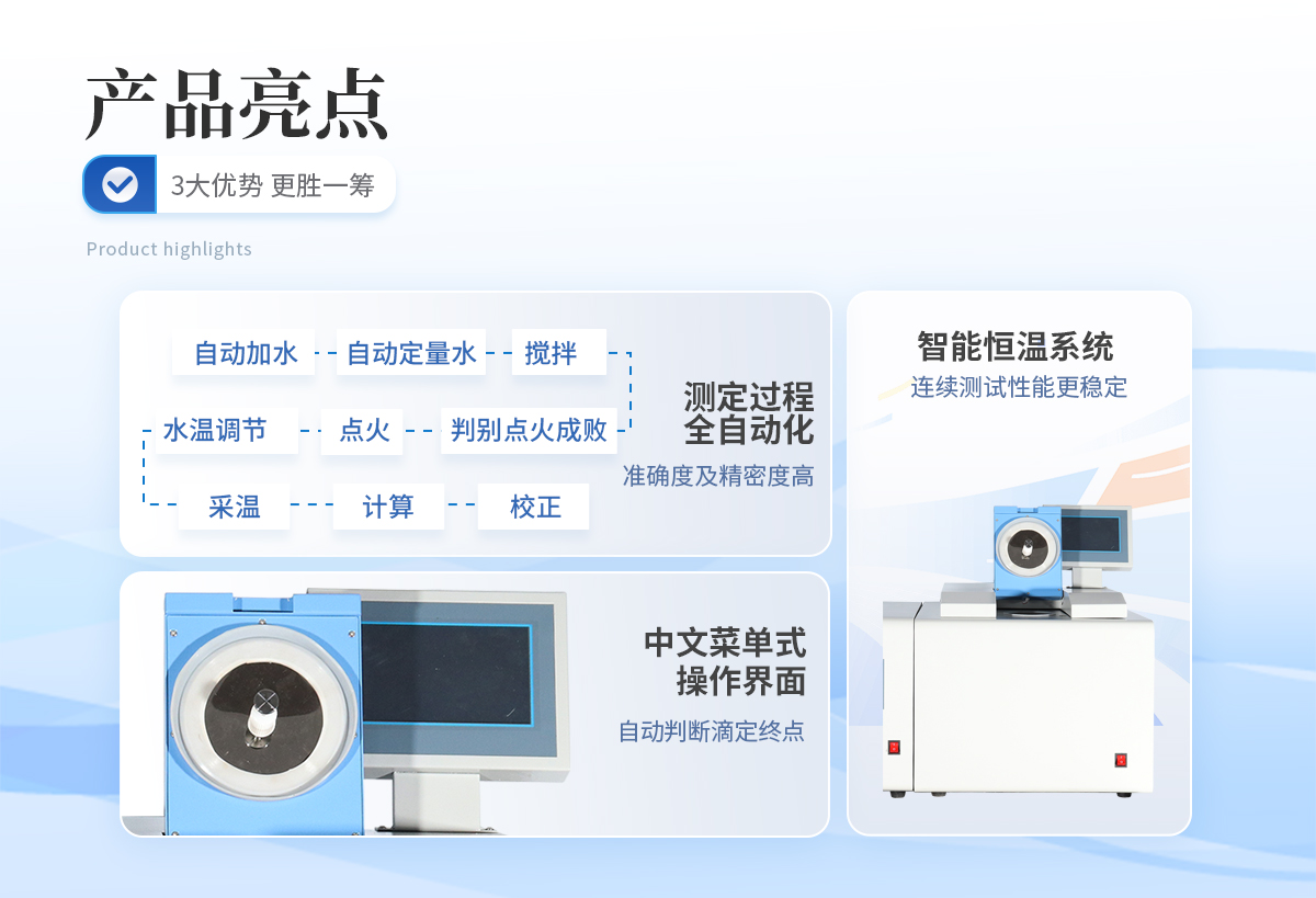 | 1、采用單片機系統(tǒng)來控制儀器,實現(xiàn)啟動后自動加水、自動定量水、攪拌、水溫調節(jié),點火、判別點火成敗、采溫、計算、校正 。 | 2、裝氧彈外,實現(xiàn)測定過程全自動化,無人為誤差,準確度及精密度高。 | 3、中文菜單式操作界面,在中文大屏幕液晶提示下,用戶裝好氧彈即可完成實驗過程。 | 4、根據(jù)用戶需要可加備USB插口,和windowsXP操作系統(tǒng),即可實現(xiàn)微機控制。 | 5、結構合理,制作精良,測量準確度高,分析速度快,性能穩(wěn)定,抗干擾能力強,使用可靠 | 6、性能穩(wěn)定、故障率低、系統(tǒng)常數(shù)和實驗結果可長時保存并且關機后不丟失等特點。 |
