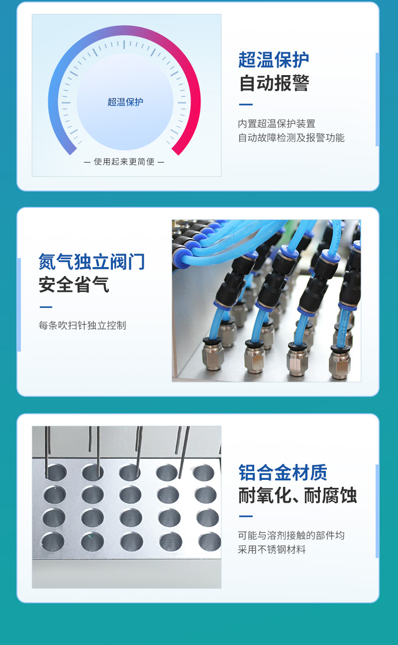 2、每一路氣體流量可單獨進(jìn)行調(diào)節(jié),克服了不可調(diào)氮吹儀各氣路氣流量大小不一的弱點。