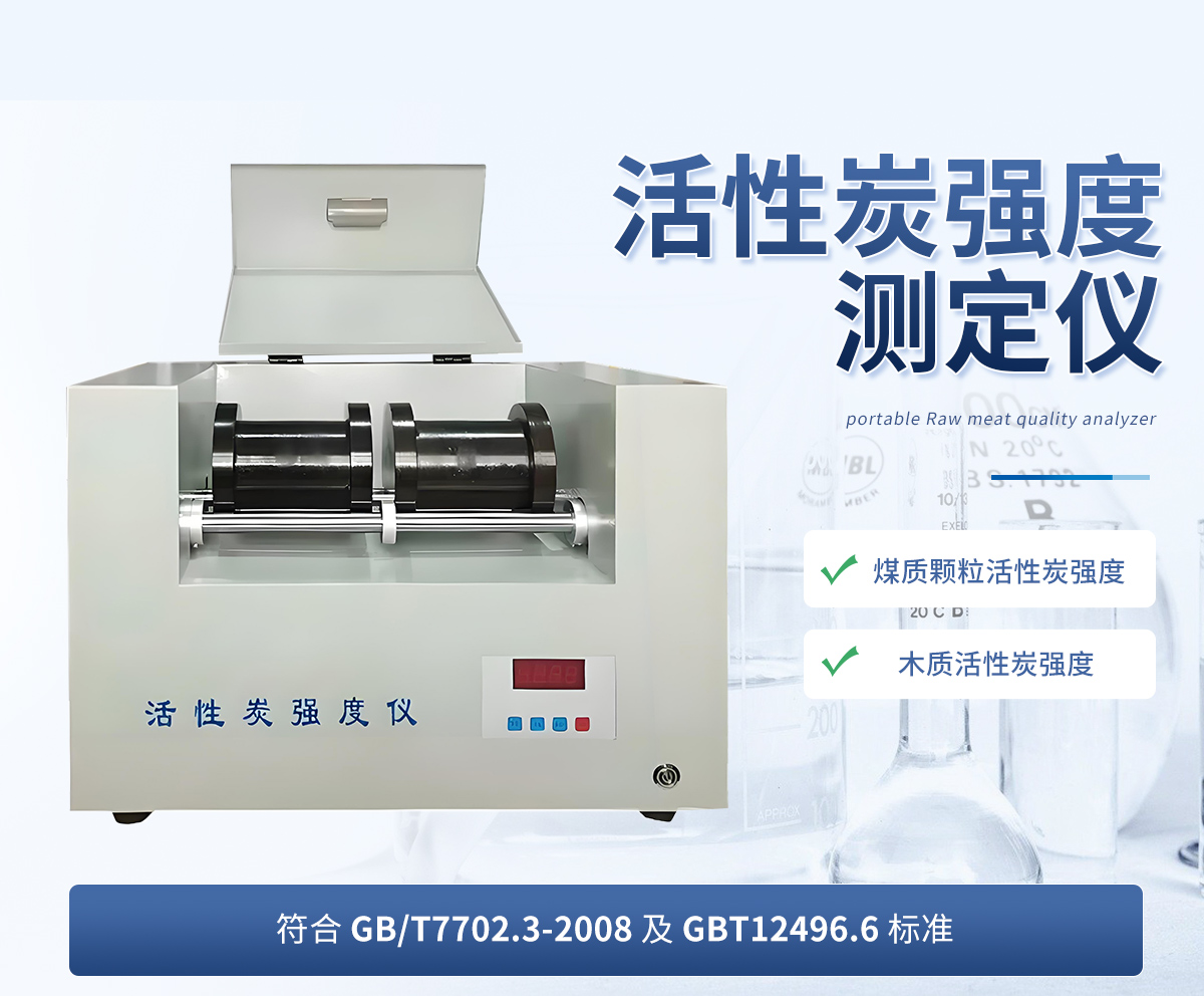 活性炭強度測定儀儀按照規(guī)定的試驗條件,將活性炭試料置于裝有鋼球的滾筒中,開啟強度測定儀,開始計時,通過滾筒的機械運動,試料被磨損,測定被破壞試料粒度的變化情況,用保留在試驗篩上的試料質(zhì)量占原試料的質(zhì)量分數(shù),可求出活性炭試樣的強度。