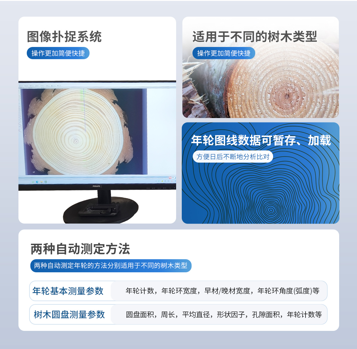 圖像撲捉系統(tǒng):標(biāo)準(zhǔn)年輪樣本掃描設(shè)備,生長錐定位器等。 A4幅面:掃描面積22×30cm,投影面積20×25cm,分辨率4800DPI,可分辨*小粒子0.005mm A3幅面:超大掃描面積31×44cm,投影面積31×42cm,分辨率2400DPI,可分辨*小粒子0.011mm 年輪分析軟件:標(biāo)準(zhǔn)版分析軟件。