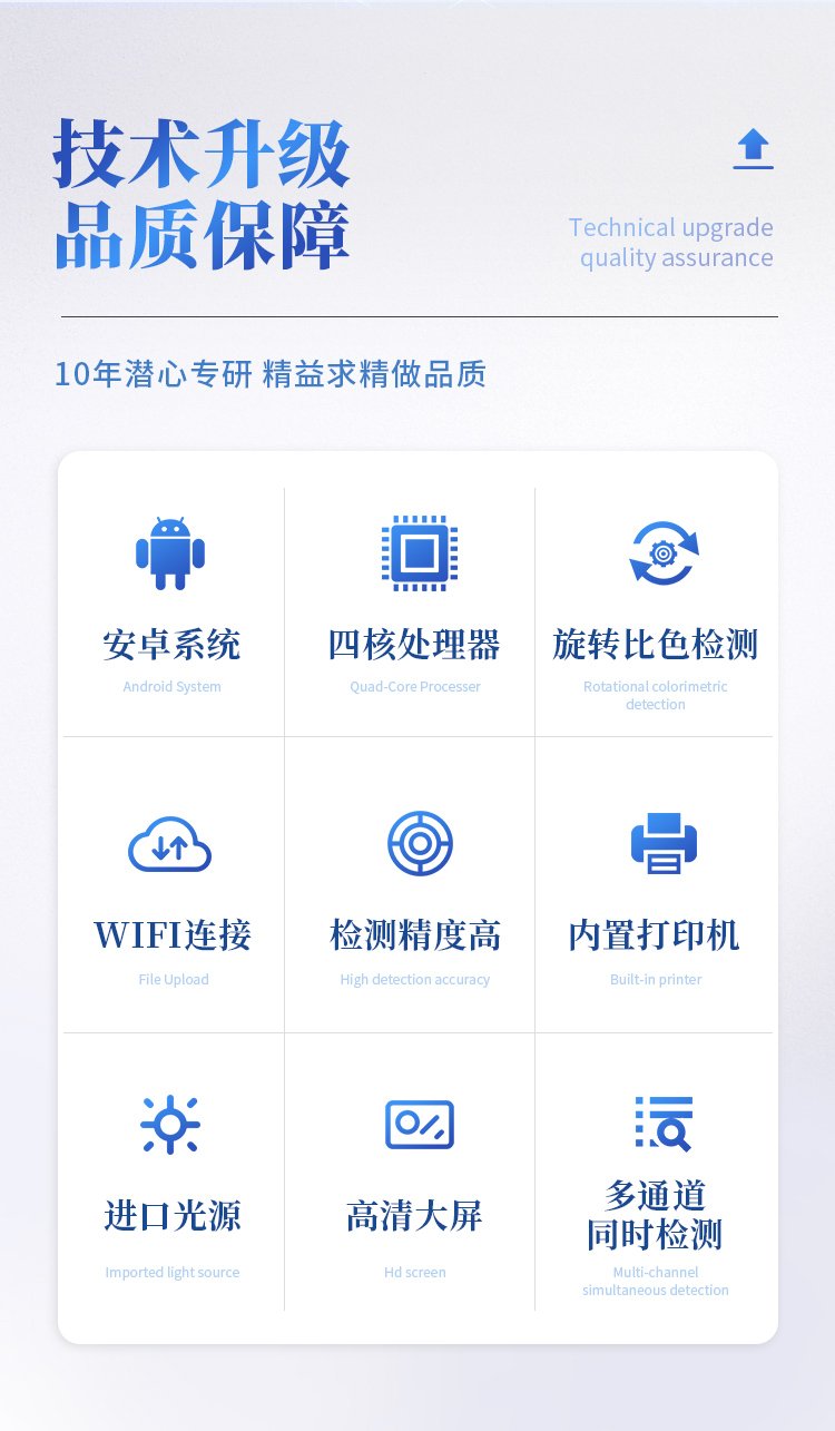 *儀器采用精密旋轉(zhuǎn)比色池設(shè)計,使用光源一致,可以解決各通道間由于光源誤差帶來的檢測結(jié)果誤差問題,檢測結(jié)果更加精準(zhǔn)。