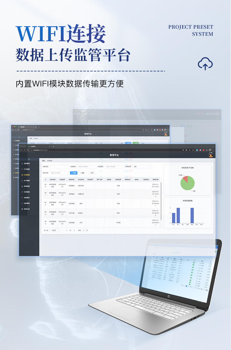 6、儀器具有wifi聯(lián)網(wǎng)功能,可將數(shù)據(jù)快速上傳電腦,進(jìn)行數(shù)據(jù)管理與統(tǒng)計(jì),4G信號(hào)GPRS遠(yuǎn)傳功能,可插手機(jī)卡實(shí)現(xiàn)數(shù)據(jù)遠(yuǎn)傳平臺(tái),。