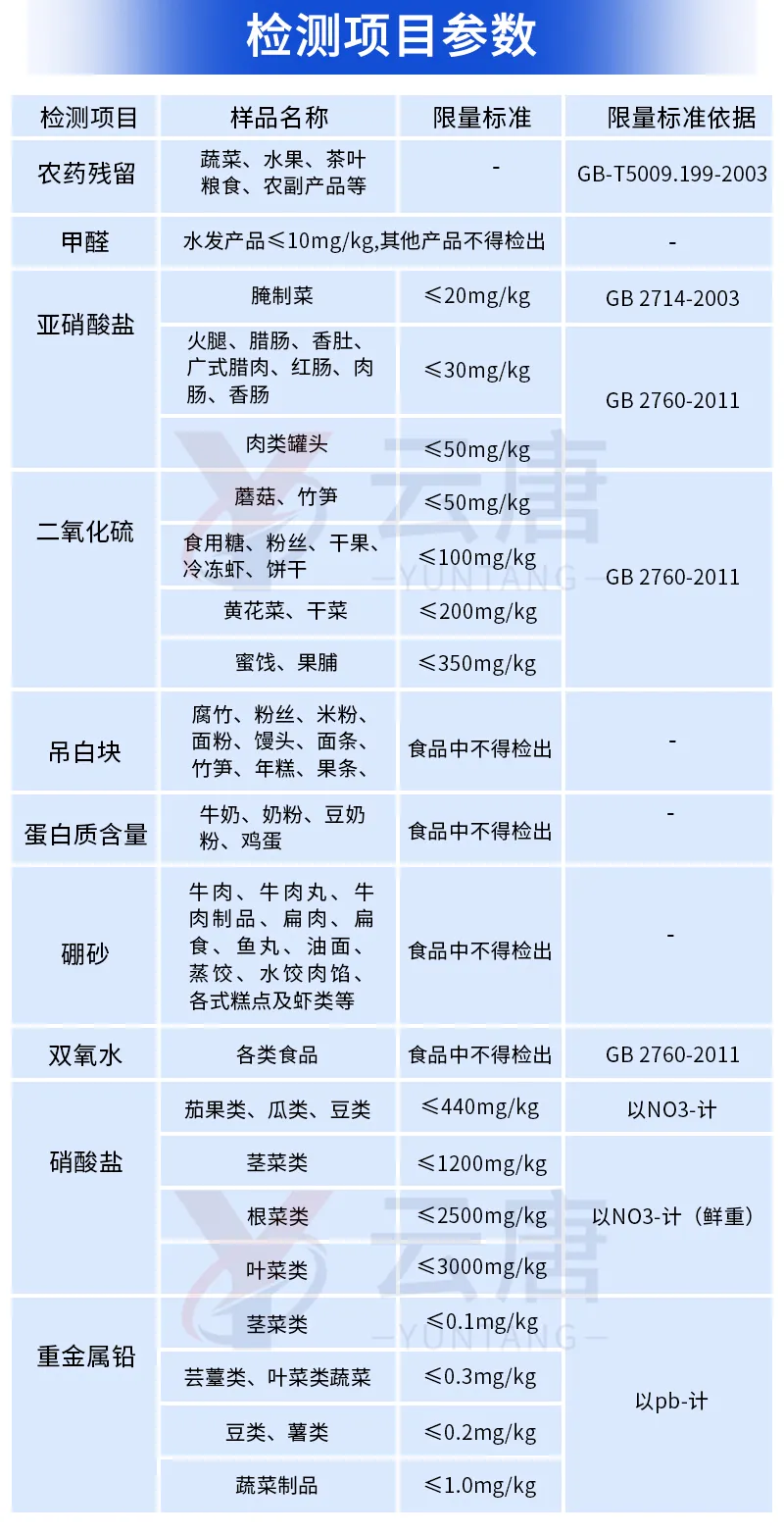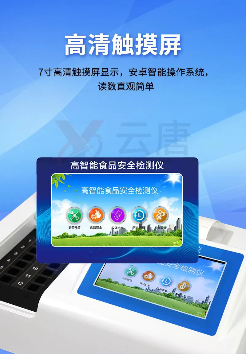 可快速檢測各類食品中的甲醛、吊白塊、二氧化硫、亞硝酸鹽、雙氧水、硼砂、農(nóng)藥殘留、乳及乳制品中蛋白質(zhì)的含量,儀器預(yù)留其他項目檢測程序和端口,根據(jù)日后需求可方便的自主增加檢測項目。