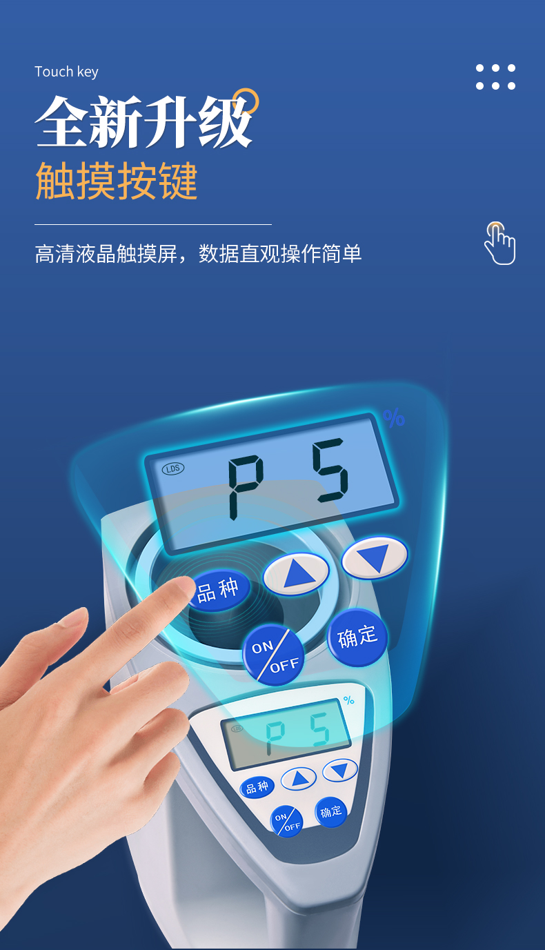 適合國情:用戶可對本地特殊品種采用本機獨創(chuàng)的四點定標法自行定標,自行修正水分值