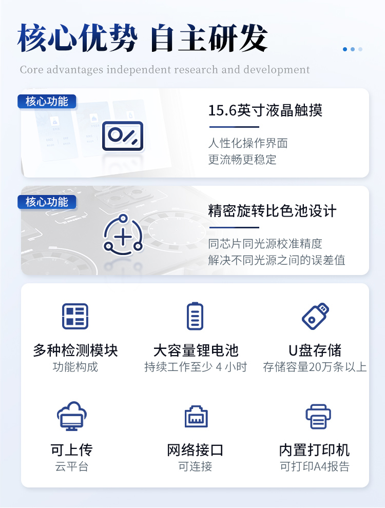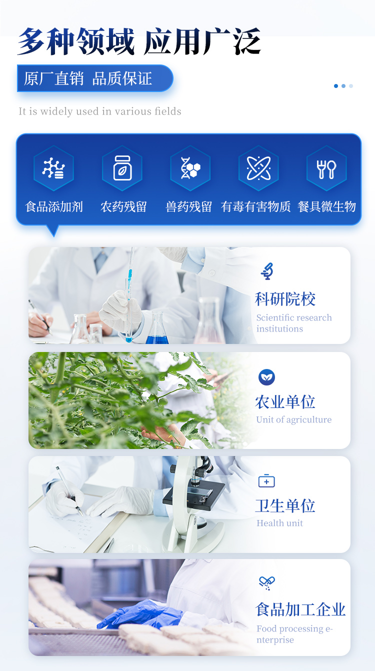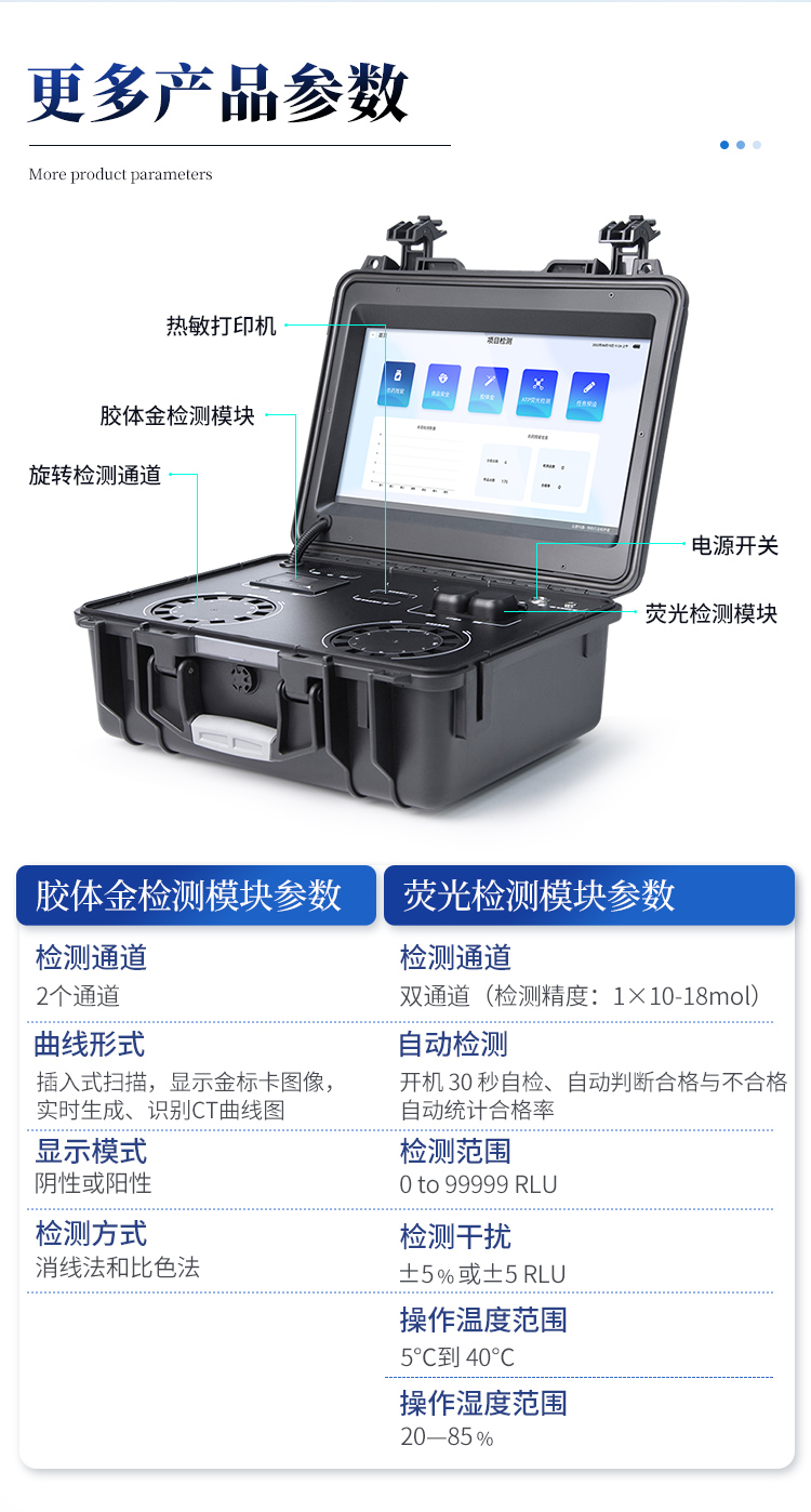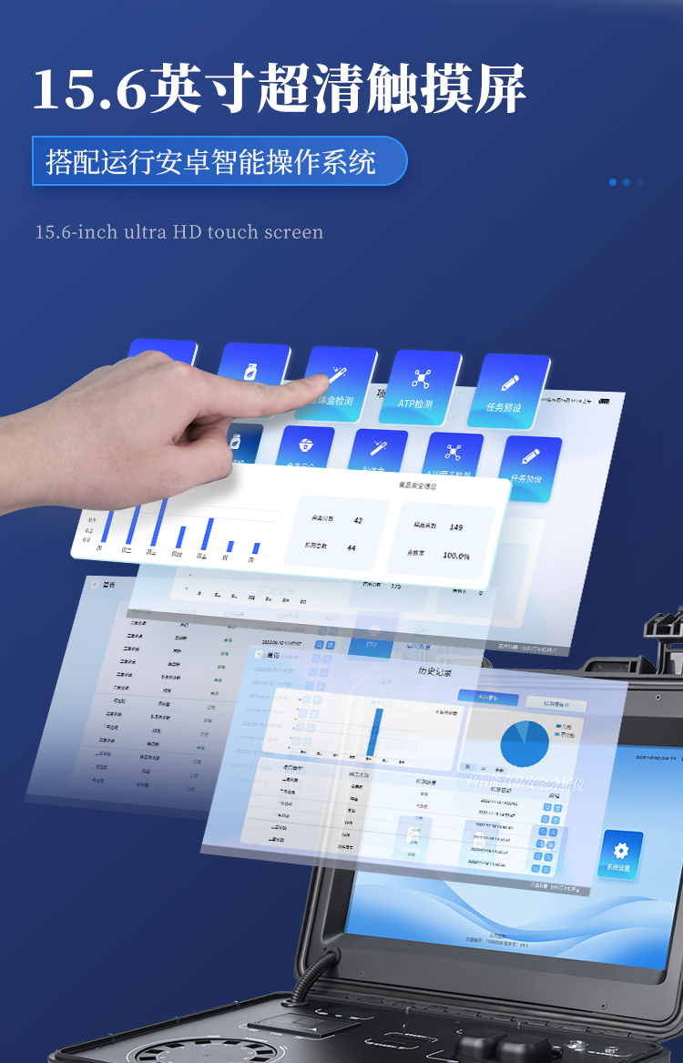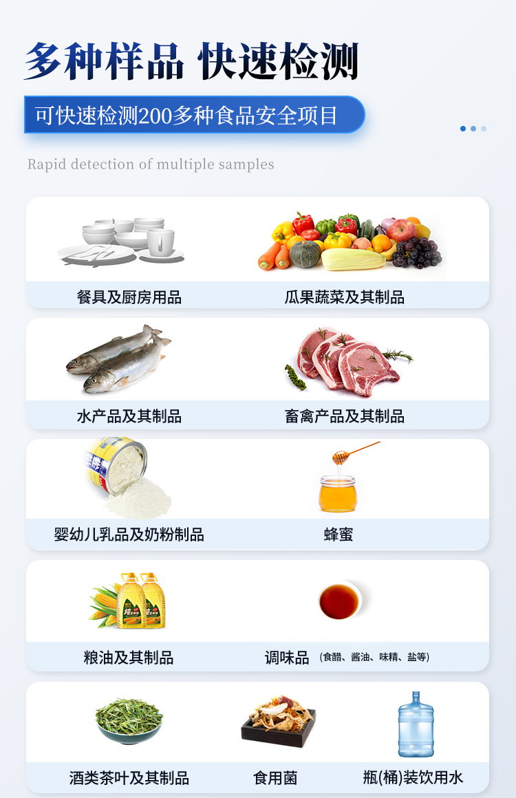 1. 功能構(gòu)成:主要包括分光光度模塊、新型農(nóng)殘檢測模塊、膠體金檢測模塊、熒光檢測模塊、數(shù)字化管理模塊等,所有模塊集成一體,可快速檢測200多種食品安全項(xiàng)目,如獸藥殘留、農(nóng)藥殘留、非法添加劑、細(xì)菌數(shù)值等指標(biāo)。2. 檢測樣品種類:餐具及廚房用品、瓜果蔬菜及其制品、水產(chǎn)品及其制品、畜禽產(chǎn)品及其制品、嬰幼兒乳品及奶粉制品、蜂蜜、糧油及其制品、調(diào)味品(食醋、醬油、味精、鹽等)、酒類茶葉及其制品、食用菌、飲料、蛋類藥物殘留(雞蛋,鴨蛋等)、米豆面制品、糖果糕點(diǎn)類(小食品)、薯類及膨化食品、瓶(桶)裝飲用水、添加食用色素的食品、使用添加劑的食品、含有有毒有害物質(zhì)的相關(guān)食品。3、顯示屏幕:儀器采用15.6英寸液晶觸摸屏顯,搭配運(yùn)行安卓智能操作系統(tǒng),主控芯片采用ARM Cortex-A7,RK3288/4核處理器,主頻1.88Ghz,操作方便,性能更強(qiáng)。4、供電模式:儀器交直流兩用,直流12V供電,可連接車載電源,配18ah大容量充電鋰電池,電量可實(shí)時(shí)顯示,無外部電源條件下可持續(xù)工作至少 4 小時(shí)。5、檢測通道:≥24通道;采用精密旋轉(zhuǎn)比色池設(shè)計(jì),使用同芯片同光源校準(zhǔn)精度,解決不同光源之間的誤差值,更加準(zhǔn)確**,采用高精度進(jìn)口四波長冷光源,每個(gè)通道均配置 410、520、590、630nm 波長光源,標(biāo)配**的光路切換裝置,專利光路切換功能可實(shí)現(xiàn)64波長,并且所有檢測項(xiàng)目可實(shí)現(xiàn)所有通道同時(shí)檢測.6、通訊接口:配備無線通信模塊、4G(APN)通訊模塊、藍(lán)牙傳輸,同時(shí)具有雙USB接口以及RJ45網(wǎng)線接口,可以多方式實(shí)現(xiàn)數(shù)據(jù)保存及數(shù)據(jù)傳輸。7、存儲方式:支持U盤存儲,兩個(gè)標(biāo)準(zhǔn)USB接口,免驅(qū)動安裝。檢測結(jié)果存儲容量20萬條以上,可生成Excel表格進(jìn)行拷貝,并具有登錄保護(hù)功能。8、操作系統(tǒng):儀器可在同一檢測界面自動對應(yīng)相關(guān)檢測通道,一次性選擇不少于11個(gè)樣品名稱,無需退出界面,節(jié)省操作時(shí)間。并可以對每個(gè)通道屬性和樣品信息單獨(dú)進(jìn)行編輯,例如送檢單位、人員,檢測人員等,打印時(shí)勾選打印顯示。9、數(shù)據(jù)集成系統(tǒng):設(shè)備首頁自動匯總分析檢測數(shù)據(jù),包含:周檢測數(shù)據(jù)、月檢測數(shù)據(jù),全部檢測總數(shù)量,包含檢測總數(shù),合格數(shù),不合格數(shù),以及相關(guān)柱形分析圖,各項(xiàng)檢測數(shù)據(jù)一目了然,無需電腦查詢,更加快捷直觀。10、數(shù)據(jù)庫系統(tǒng):十幾項(xiàng)數(shù)據(jù)庫分類管理儀器:包含項(xiàng)目類型、項(xiàng)目數(shù)據(jù)、檢測數(shù)據(jù)、歷史記錄、國標(biāo)信息、曲線信息、采樣信息、檢測信息、受檢信息、復(fù)核信息、圖表信息、光源校準(zhǔn)信息、打印樣式信息、樣品庫信息等等,數(shù)據(jù)庫之間互相協(xié)調(diào)聯(lián)動保證數(shù)據(jù)的真實(shí)完整性。同時(shí)產(chǎn)品數(shù)據(jù)庫以及歷史檢測記錄支持一鍵檢索功能。11、限量規(guī)判系統(tǒng):具有限量查詢、添加物質(zhì)合規(guī)判定系統(tǒng)。檢測出結(jié)果后,系統(tǒng)自動調(diào)用系統(tǒng)數(shù)據(jù)庫中相關(guān)國標(biāo)進(jìn)行比對判定,客觀顯示判定結(jié)果是否合格。12、項(xiàng)目預(yù)設(shè)系統(tǒng):儀器具有任務(wù)預(yù)設(shè)模塊,一鍵提前預(yù)設(shè),給出方便快捷的新檢測方案,每一個(gè)任務(wù)分別可以設(shè)置不同的樣品、批次、編號、來源、備注、抽樣信息、檢測信息、受檢信息、復(fù)核信息等更多信息。樣品送檢時(shí)一鍵調(diào)取保存信息,并可多次調(diào)取,適用于大批量檢測業(yè)務(wù),可以大大提高檢測效率。13、數(shù)據(jù)監(jiān)管系統(tǒng):同步對接監(jiān)管平臺,數(shù)據(jù)可局域網(wǎng)和互聯(lián)網(wǎng)數(shù)據(jù)上傳,檢測結(jié)果可直接傳至食品安全監(jiān)管平臺。進(jìn)行區(qū)域食品安全監(jiān)管及大數(shù)據(jù)分析處理與數(shù)據(jù)統(tǒng)計(jì),監(jiān)測區(qū)域食品安全長短期動態(tài)及問題預(yù)估、預(yù)警。14.1、全新打印系統(tǒng):內(nèi)置全新打印機(jī),新創(chuàng)自定義打印方式,可按需靈活勾選控制:產(chǎn)品合格證(國家農(nóng)業(yè)部標(biāo)準(zhǔn)要求),二維碼,抽樣信息、檢測信息,受檢信息、復(fù)核信息、抽樣日期、檢測日期等信息的打印。14.2、A4紙版本報(bào)告打印功能:設(shè)備擁有兩種結(jié)果展示方式,可以自動生成A4打印模板和小票打印模板兩種樣式,可通過WiFi及網(wǎng)線等方式連接外置打印機(jī)可進(jìn)行打印。15、膠體金檢測模塊:采用單通道CMOS成像處理技術(shù)及膠體金免疫層析技術(shù),可讀取膠體金卡數(shù)據(jù),自動采集、處理分析,將檢測結(jié)果顯示,并可根據(jù)參考限值自動判斷檢測結(jié)果,可檢測常見的獸藥殘留、生物毒素、抗生素、違禁添加物等。15.1、可即時(shí)檢測單聯(lián)卡及三聯(lián)卡;15.2、檢測通道:2個(gè)通道;15.3、檢測方式:消線法和比色法; 15.4、顯示模式:陰性或陽性;15.5、曲線形式:插入式掃描方式,顯示金標(biāo)卡圖像,實(shí)時