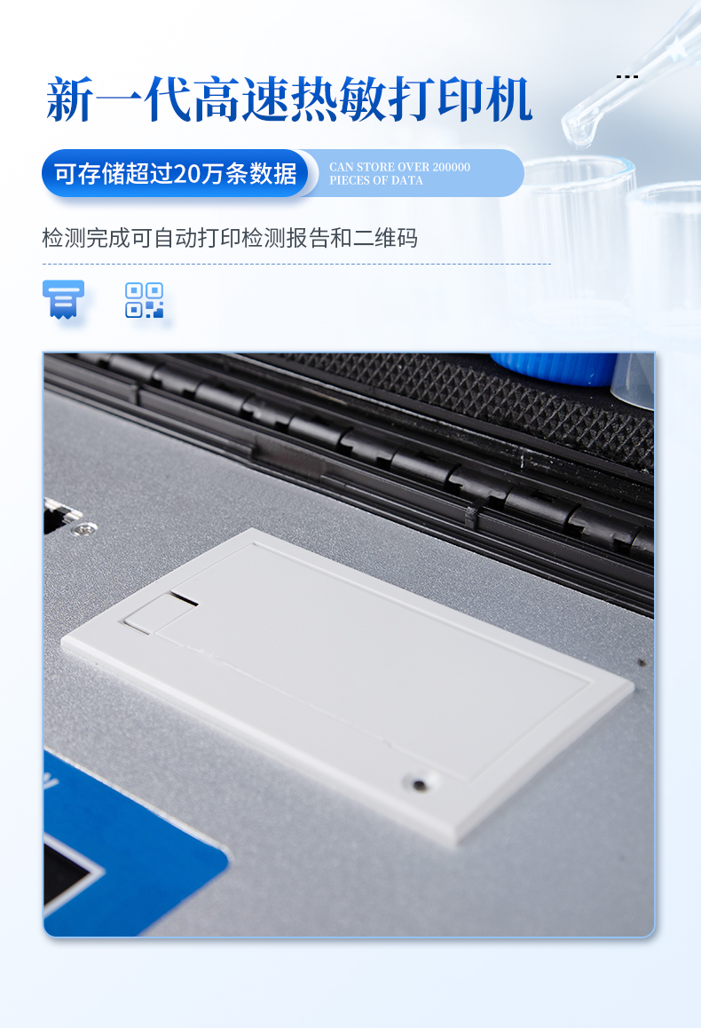 4、新一代高速熱敏打印機(jī),檢測完成可自動打印檢測報告和二維碼。