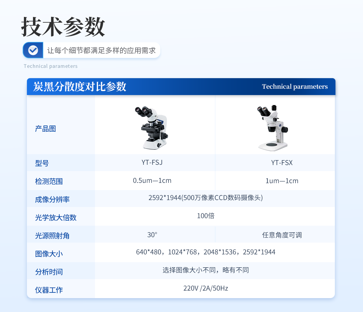 | 1. 檢測(cè)范圍:1um—1cm | 2. 成像分辨率:2592*1944(500萬(wàn)像素CCD數(shù)碼攝像頭) | 3. 光學(xué)放大倍數(shù):100倍 | 4. 光源照射角:任意角度可調(diào) | 5. 圖像大小:640*480,1024*768,2048*1536,2592*1944 | 6. 分析時(shí)間:選擇圖像大小不同,略有不同 | 7. 儀器工作電源:220V /2A/50Hz |