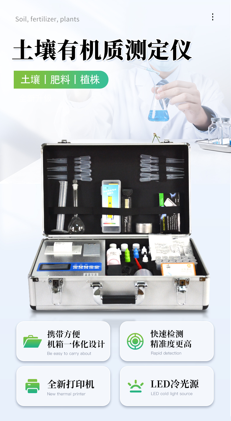 配套齊全:土壤有機質(zhì)速測儀該儀器集藥、器、儀為一體,攜帶方便,相當于一個小型實驗室。適于農(nóng)業(yè)服務(wù)部門或農(nóng)資經(jīng)銷商、肥料廠商測土施肥和鑒別肥料真假。