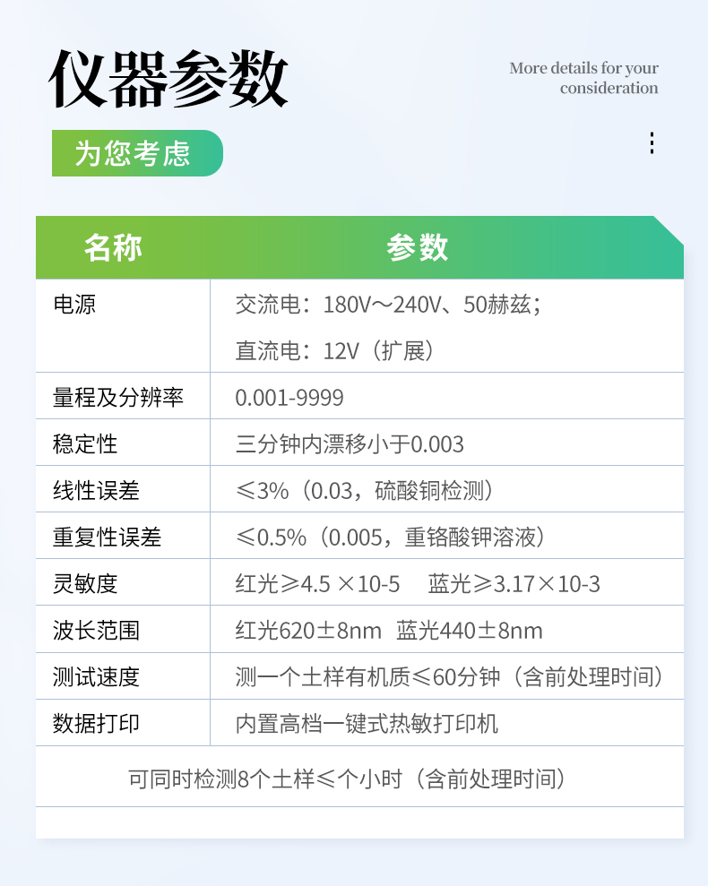 測一個土樣有機質(zhì)≤60分鐘,同時檢測三個土樣有機質(zhì)≤80分鐘。