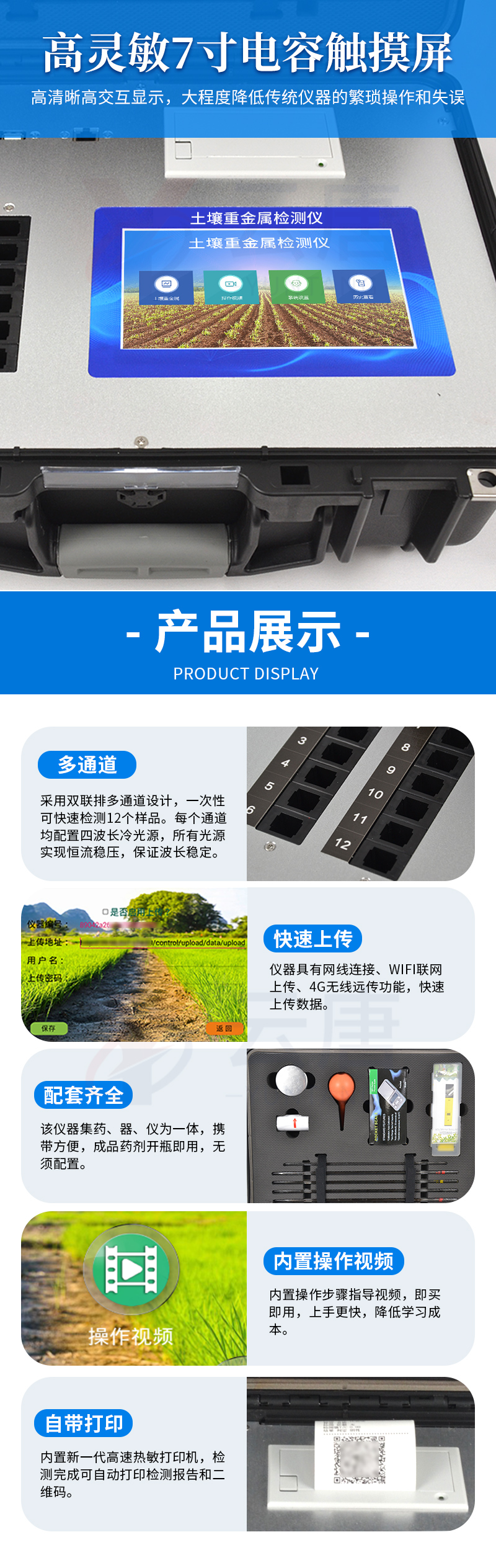 可對土壤、肥料、作物、蔬菜、水果、水質(zhì)、食品等樣品中的砷、鉛、鎘、鉻、汞、鐵、鋁、鋅、錳、銅等進(jìn)行快速聯(lián)合測定。