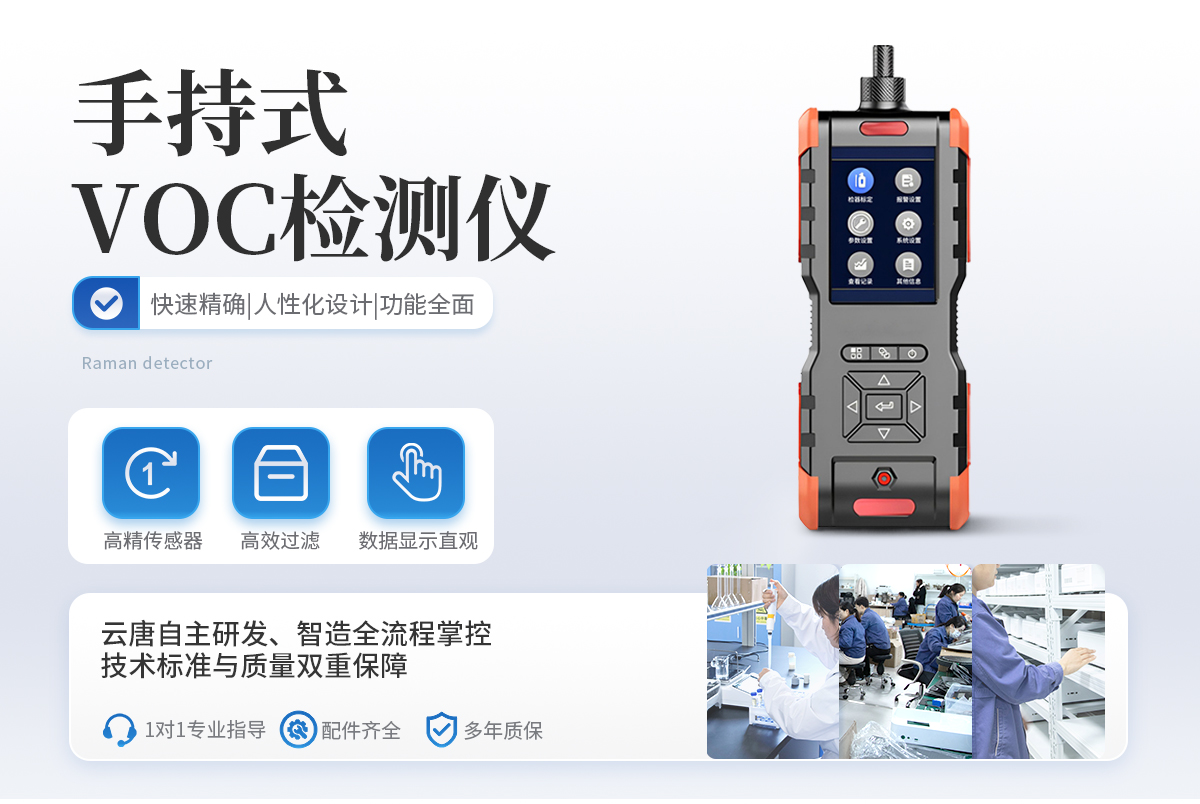 手持式VOC檢測(cè)儀主要用于檢測(cè)車間的VOC濃度、廠界的VOC濃度、固定污染源排放VOC濃度、安全事故應(yīng)急監(jiān)測(cè)、廢氣排放濃度達(dá)標(biāo)快速檢測(cè)。