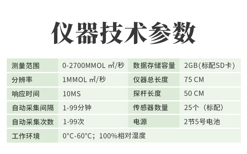 測(cè)量范圍0~2000μmol/㎡?S