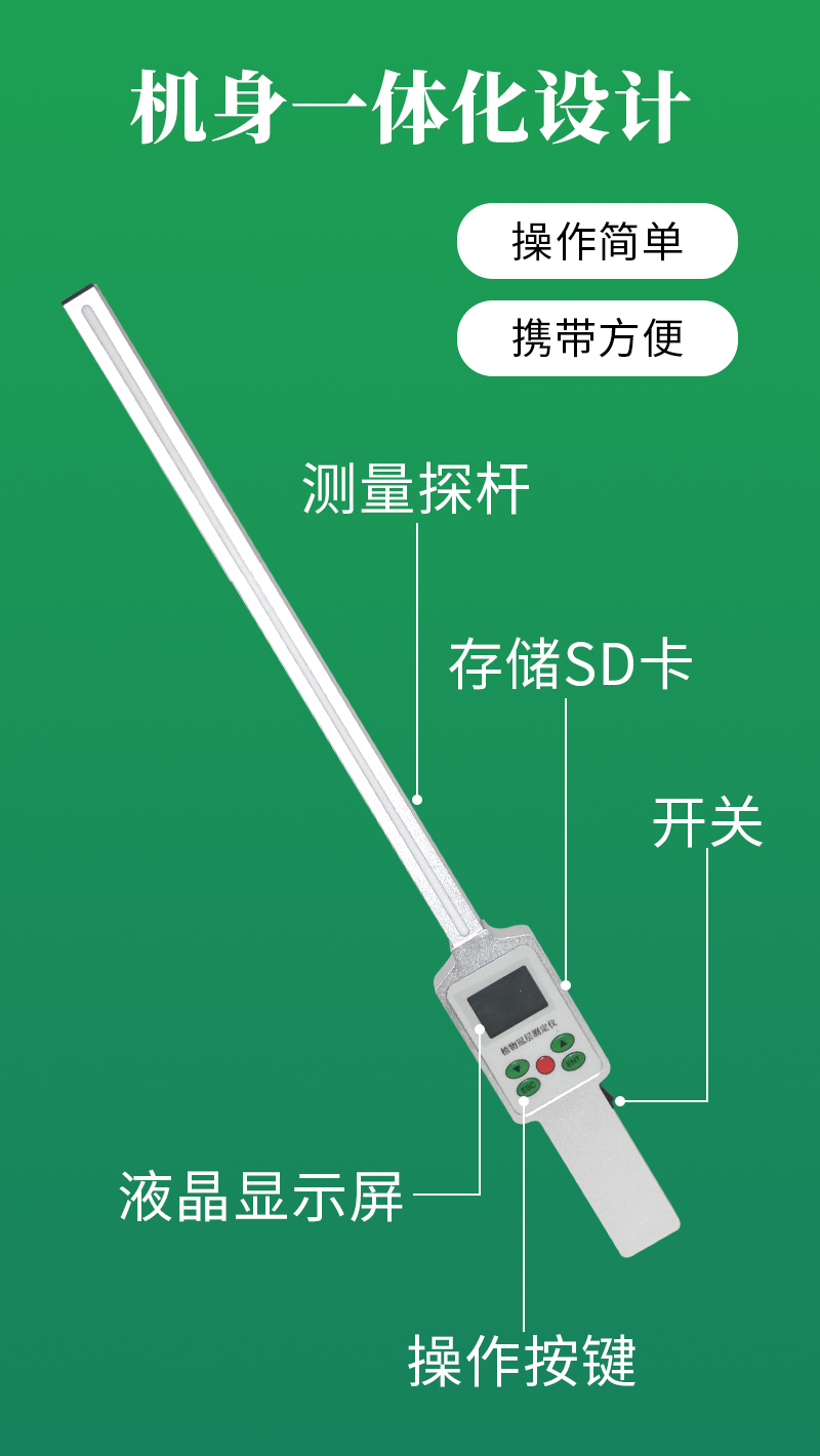 魚(yú)眼鏡頭可以伸入至冠層中:鏡頭安裝在搖臂一端,由于小巧和帶有測(cè)量桿,可以方便地水平向前或垂直向上伸入到冠層不同高度處,快速地進(jìn)行分層測(cè)量,測(cè)出群體內(nèi)光透過(guò)率和